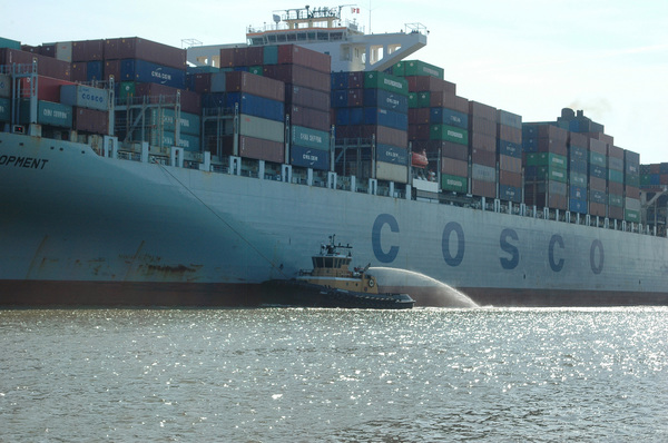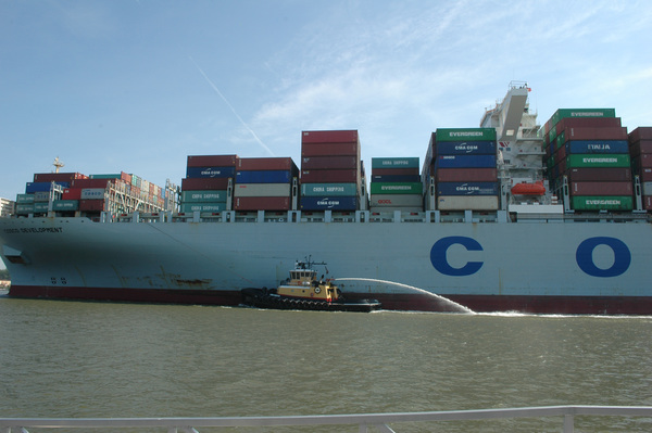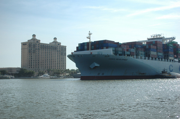 The ports authority is hoping for more business as well. Jimmy Allgood, the ports chairman, boarded a pilot vessel at 5:30 a.m. and made his way aboard the Development via a rope ladder. He said he was then whisked up an elevator to the bridge with a river pilot crew and Cosco officials for the ride to port.