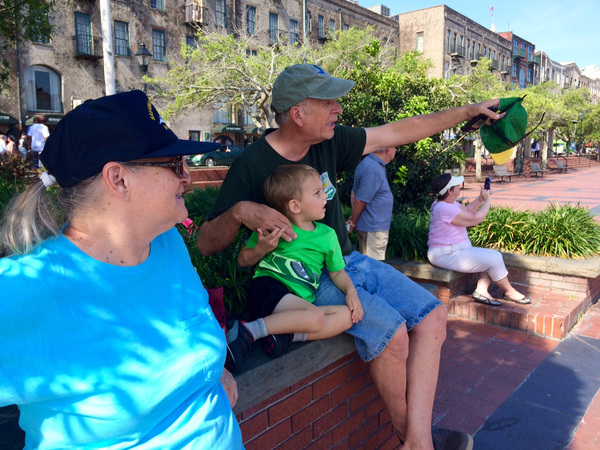 Kenneth Stanford, who said he was a Savannah River pilot for 42 years, watched the Development ease her way through the channel and under the bridge with the help of several pilot boats. He brought his 3-year-old grandson, Anderson, and sister Kay Stanford with him to watch.