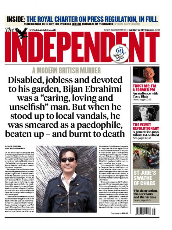 The exchange summed up the attitude towards the disabled Mr Ebrahimi, who had problems with his mobility, by officers from the force. Three days after the episode, the Iranian-born Mr Ebrahimi was dead, released without charge and murdered by the same intruder who had wrongly branded him a paedophile and helped to whip up a vigilante mob against the 44-year-old outside his home in Bristol.