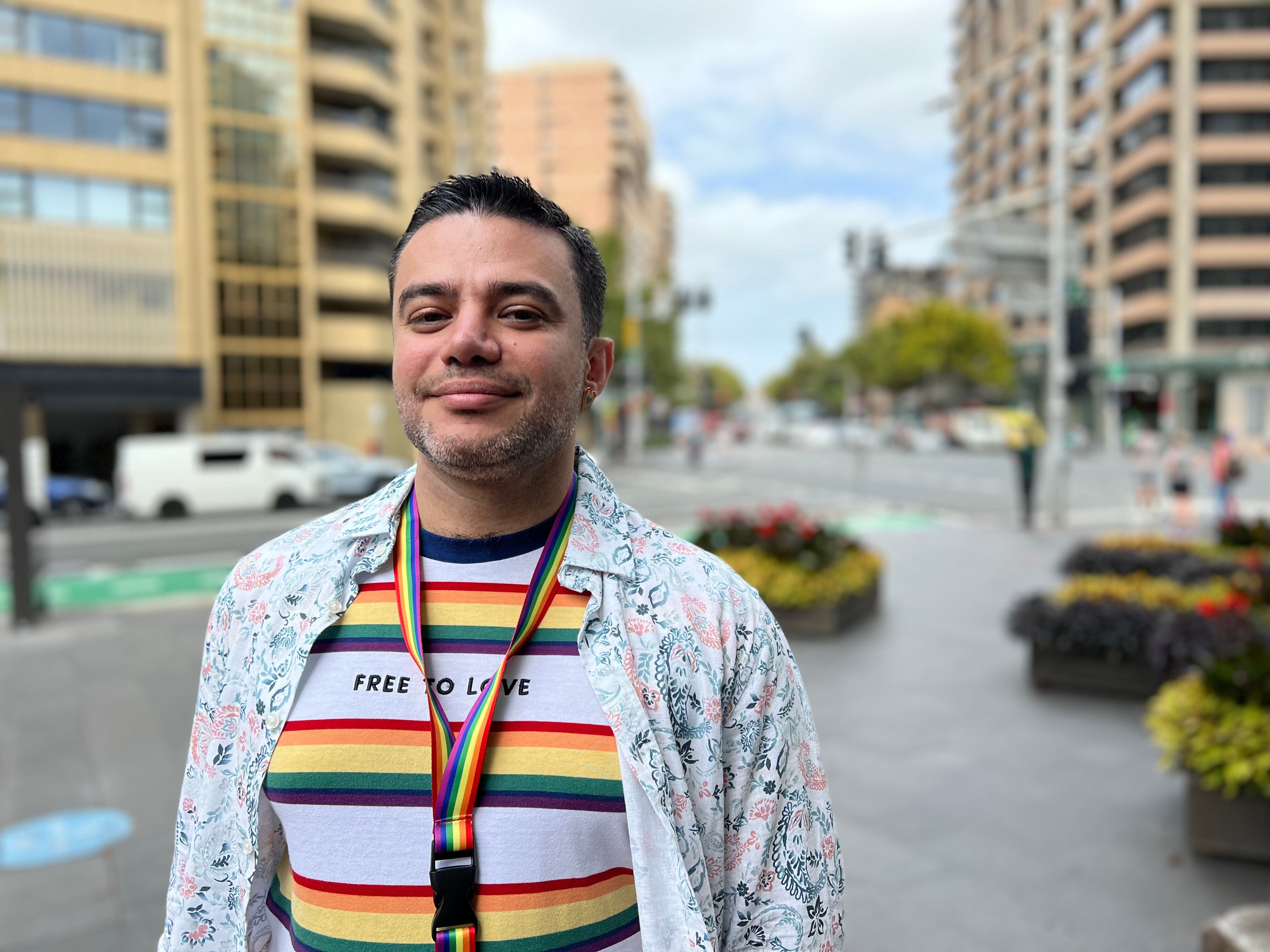 The 38-year-old now lives in Sydney's inner-west and enjoys his freedom to wear rainbows in public.