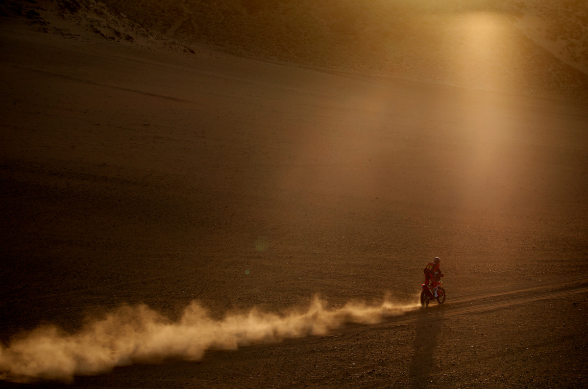 Overnight leader Joan Barreda dropped to eighth overall, the Spaniard now more than nine minutes behind Howes, after having to open the stage through the desert dunes.