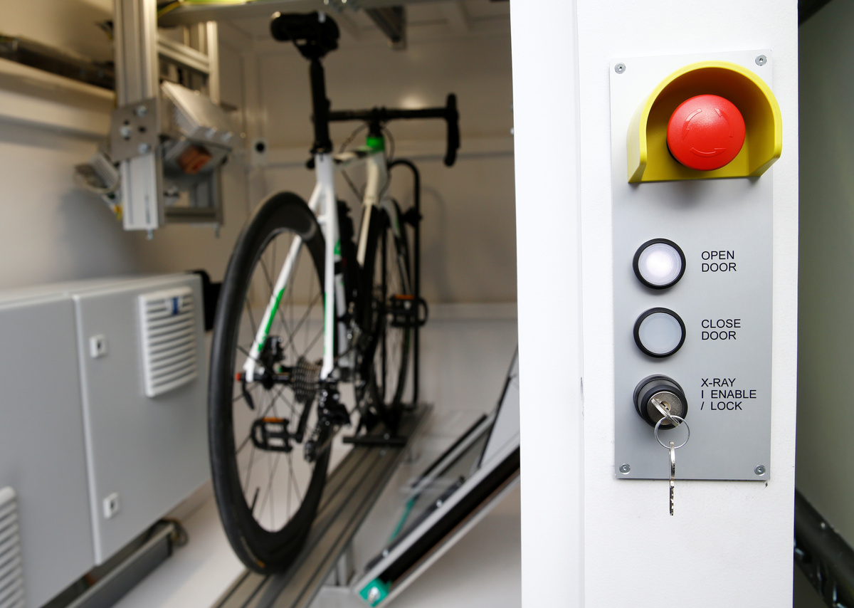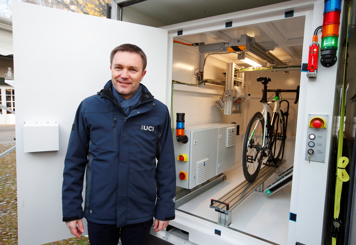 David Lappartient, President of the International Cycling Union (UCI) poses next to the x-ray machine after a news conference on the fight against technological fraud in Geneva, Switzerland March 21, 2018. REUTERS/Denis BalibouseA staff demonstrates the use of the x-ray machine after an International Cycling Union (UCI) news conference on the fight against technological fraud in Geneva, Switzerland March 21, 2018. REUTERS/Denis BalibouseDavid Lappartient, President of the International Cycling Union (UCI), attends a news conference on the fight against technological fraud in Geneva, Switzerland March 21, 2018. REUTERS/Denis BalibouseDavid Lappartient, President of the International Cycling Union (UCI), attends a news conference on the fight against technological fraud in Geneva, Switzerland March 21, 2018. REUTERS/Denis Balibouse