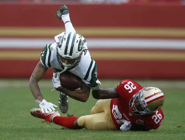 The Jets entered the game allowing only 90.4 rushing yards per game, fourth best in the league. But the unit was gashed by 49ers running back Carlos Hyde, who rushed for 193 yards on 17 carries.