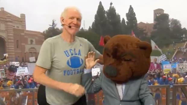 Walton's pick of the Bruins was far from the highlight of Saturday's appearance. The Hall-of-Fame center imitated a cougar as he picked BYU's matchup vs. Washington State, and he issued his own notes on the Nick Rolovich controversy in Pullman. We'll step aside and let you watch the best of Walton from Saturday below.
