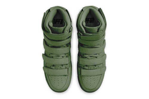 Billie Eilish is strapping in for another Nike collaboration following her “Mushroom” Air Force 1 sneaker. The singer has prepared another iteration of the high-top kicks, dressing the upcoming pair in a dark “Sequoia” green. Velcro straps still cover the shoe’s lace unit and extend up to the collar, but the shift in color scheme should deter anyone from comparing the sneaker to Band-Aids.