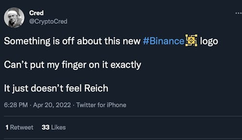 There are a lot of nuanced strategies to modern brand marketing and corporate public image, but perhaps the single easiest one to remember is, “Don’t make yourselves out to be a bunch of Nazis.” Alas, Binance’s design team apparently never heard about that tried-and-true approach, judging from their recent, short-lived social media update.