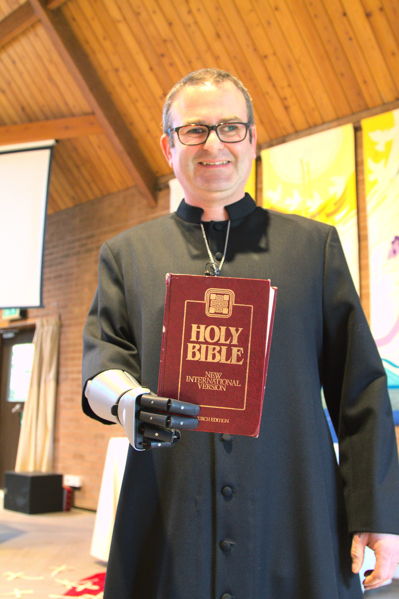 Sixteen years after losing his right arm in a car crash, a trainee vicar from Colchester has had his prayers answered thanks to a bionic arm.