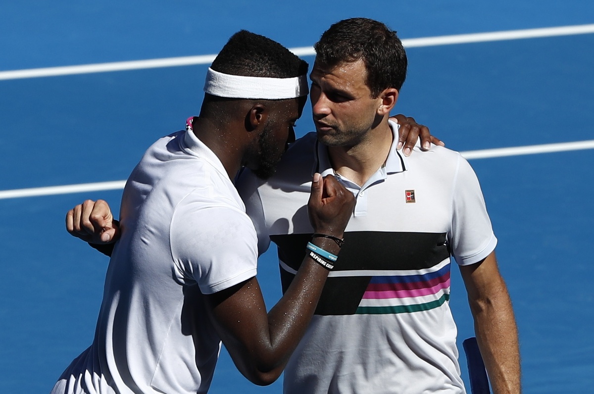 MELBOURNE (Reuters) - Unseeded American Frances Tiafoe gifted himself the perfect 21st birthday present by stunning Bulgaria's Grigor Dimitrov 7-5 7-6(6) 6-7(1) 7-5 in the fourth round of the Australian Open on Sunday.