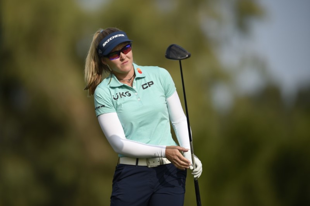 The Canadian, who turned 23 on Thursday, found herself in a four-way tie for the lead after her morning round at Mission Hills Country Club before being overtaken by American Nelly Korda, who leads the field on six-under.