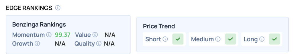 Benzinga Edge Rankings: Underscoring the stock’s recent powerful price action, Benzinga Edge rankings show BMNR with an exceptionally high Momentum score of 99.37.