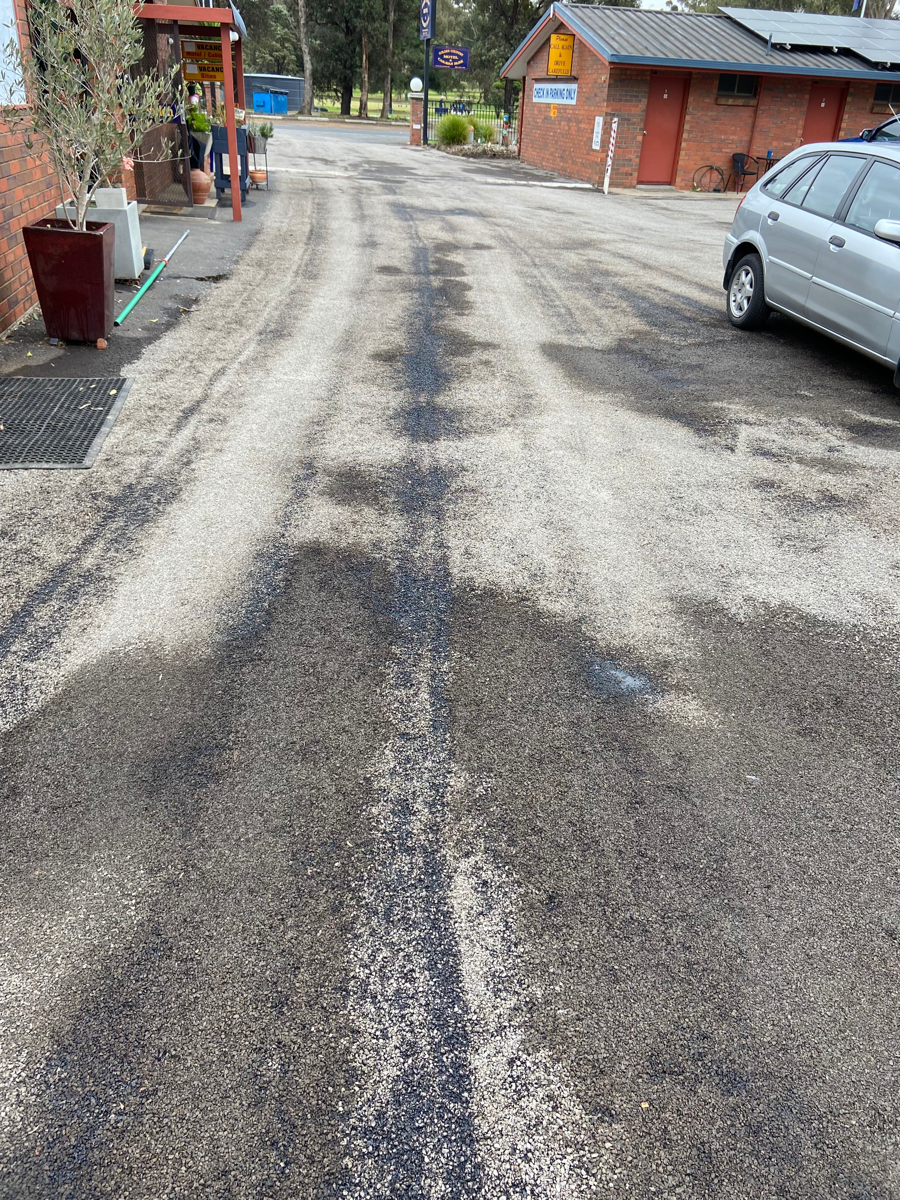 The Golden Country Motel and Caravan Park in the Victorian town of Maryborough was targeted by a man peddling leftover bitumen last year.
