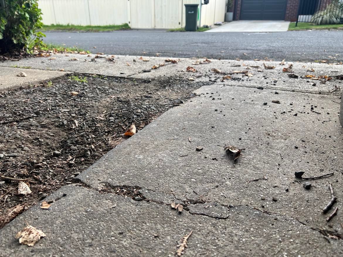 Mr Arnold said while the business had not paid "a cent" for the poor job, he was still cleaning up the mess left behind — scraping up loose gravel and re-applying spray-paint markings on a regular basis.