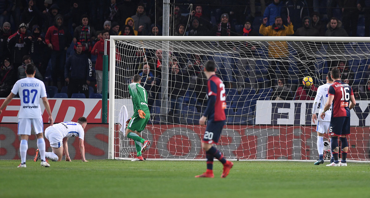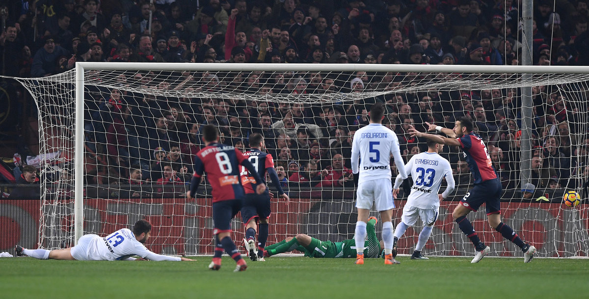 Inter, who led the table in early December, fell further behind just before the hour as Diego Laxalt's shot from the edge of the penalty area was intercepted by Pandev, who controlled it superbly with one touch and placed his shot past Handanovic.