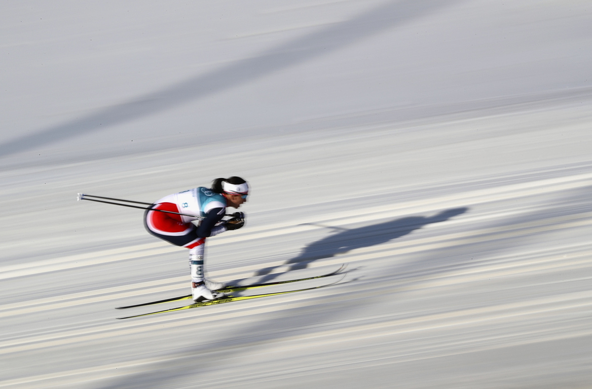 Cross-Country Skiing - Pyeongchang 2018 Winter Olympics - Women's 30km Mass Start Classic - Alpensia Cross-Country Skiing Centre - Pyeongchang, South Korea - February 25, 2018 - Marit Bjoergen of Norway in action. REUTERS/Carlos Barria