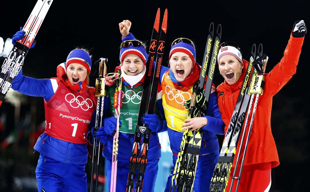 Sweden took silver, two seconds behind, after powerful performances by Charlotte Kalla, Ebba Andersson and Stina Nilsson, while the Olympic Athletes from Russia came third to take the bronze, 43.3 seconds behind the winners.