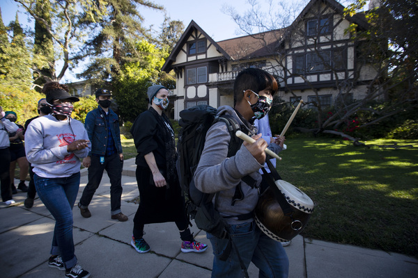 Protesters first showed up on Tuesday, banging on pots to harangue Garcetti. At one point that day, the crowd of about 35 blocked a vehicle from exiting the driveway of Getty House.