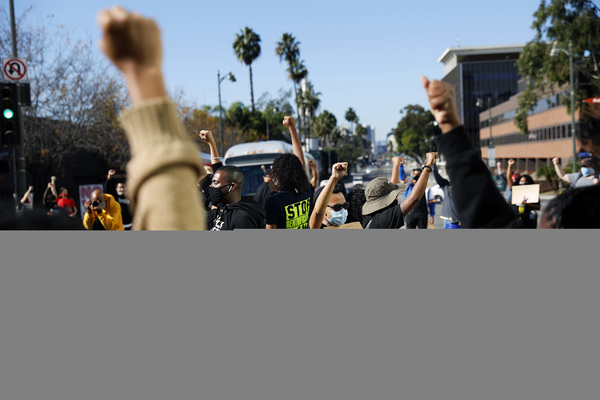 LOS ANGELES — Banging drums and chanting "Block Garcetti," activists with Black Lives Matter-Los Angeles and other groups rallied outside Mayor Eric Garcetti's home to protest the mayor's possible appointment to President-elect Joe Biden's administration.