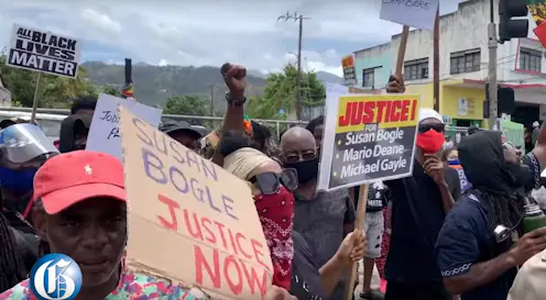 Two days after George Floyd was killed in late May, Susan Bogle, a poor woman with an intellectual disability, was allegedly shot in her home during a police-military operation in August Town, a neighbourhood of Kingston. Protesters carried placards with her name, as well as those of other victims of police brutality, including Mario Deane, who died in police custody in 2014.