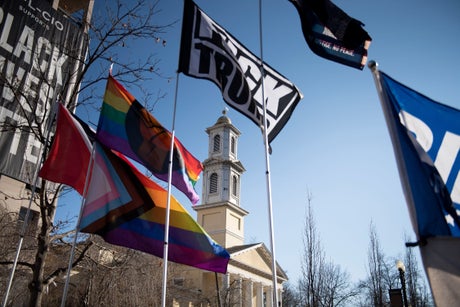 On the street, close to Lafayette Park, is St John's Episcopal Church, which the president used for what many termed a photo-op last summer, clearing the crowds with tear gas to pose in front of the building with a bible.