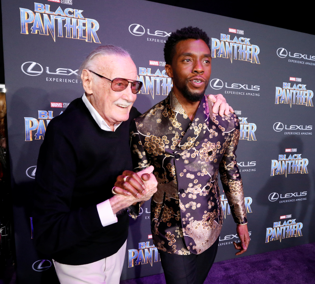 Chadwick Boseman, who plays T'Challa, the titular hero and king of fictional African nation Wakanda, led his co-stars including Lupita Nyong'o, Daniel Kaluuya, Michael B. Jordan, Danai Gurira and Angela Bassett, on the purple carpet on Monday.
