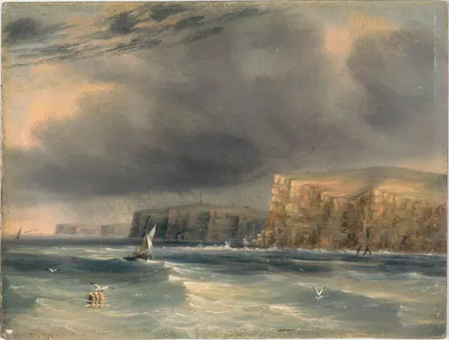 The wind variable and weather dark and gloomy, with a very troublesome high sea. About two o'clock p.m. we had one of the most sudden gusts of wind I ever remember to have known. In an instant it split our main-sail; and but for the activity shewn by the sailors, in letting fly the sheets and lowering the top-sails, the masts must have gone over the side… Fortunately for us the squall was of short duration, otherwise the ships must have suffered considerably from the uncommon cross sea that was running; which we had found to be the case ever since we reached this coast.