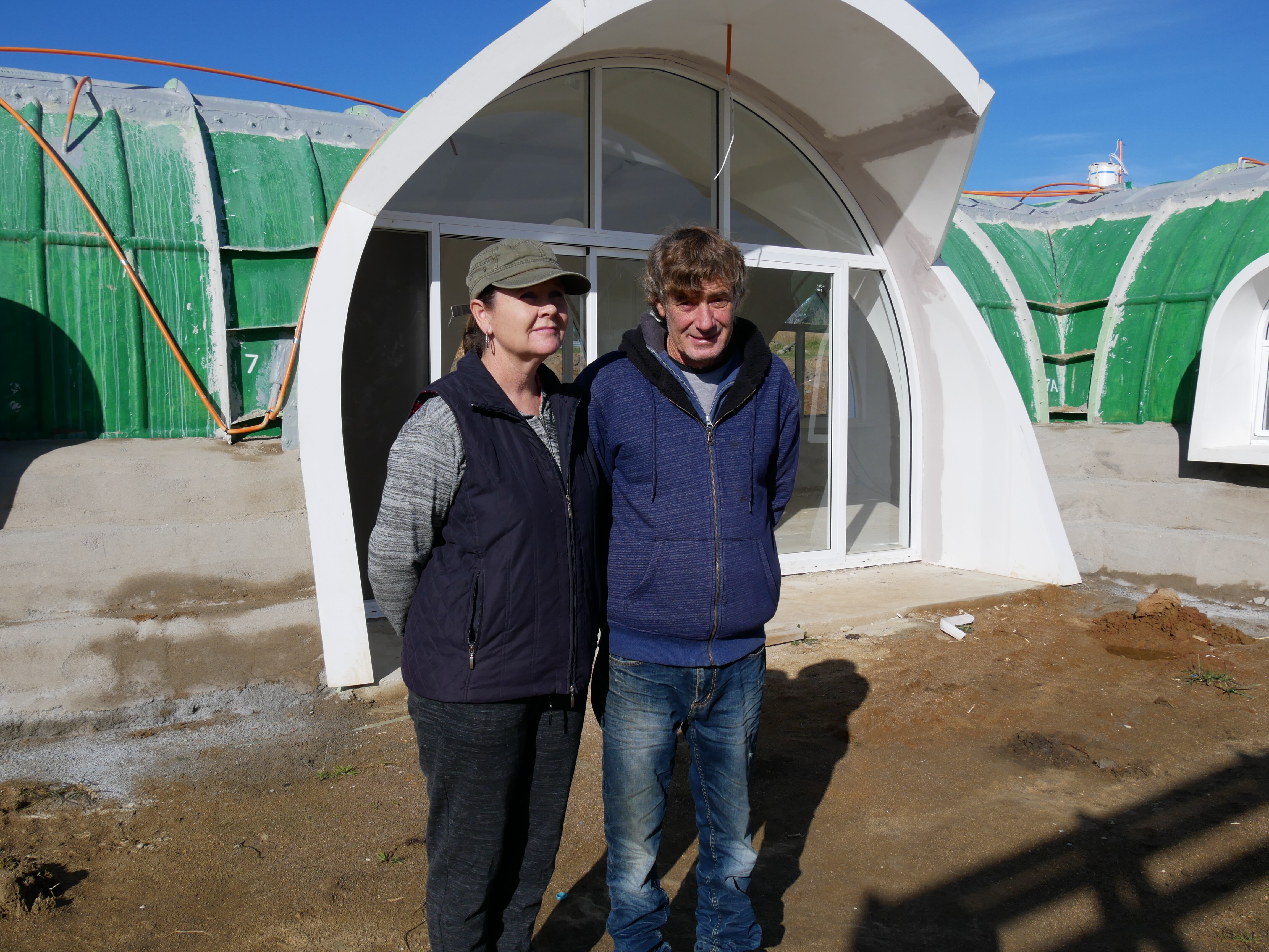 But after spending about $230,000, the couple's "earth-integrated" home, promising plants on the roof and wall cladding, remains unfinished and leaking.
