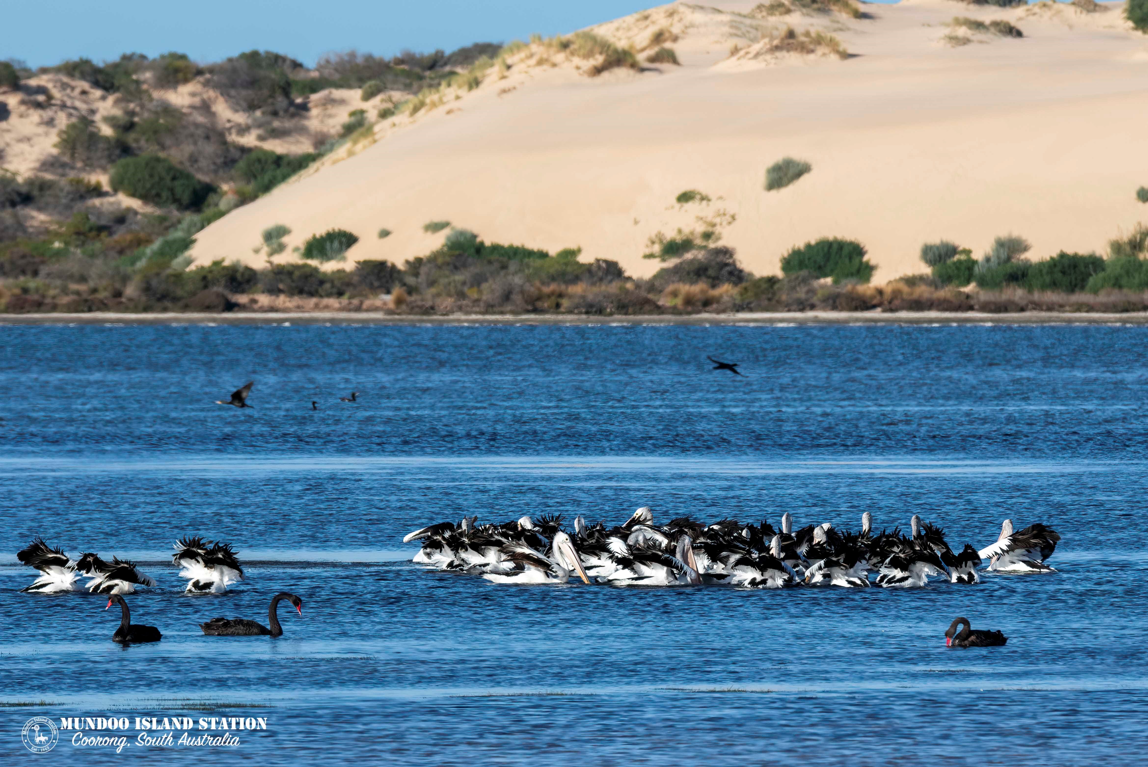 Huge numbers of birds have flocked to South Australia's Lower Lakes and Coorong region after months of sustained flows that have transformed the Murray mouth.