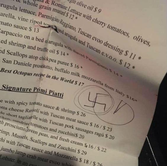 The restaurant failed to respond to inquiries. However, its lawyer, Manny Arora, said: "I would also advise that the only “racist” in this incident was Mr David Irving and his group. Mr Betti was not familiar with who Mr Irving was prior to 7/27/17 and took immediate steps to remove [the group] from his restaurant when he learned of the offensive drawing that was discovered by one of his wait staff."