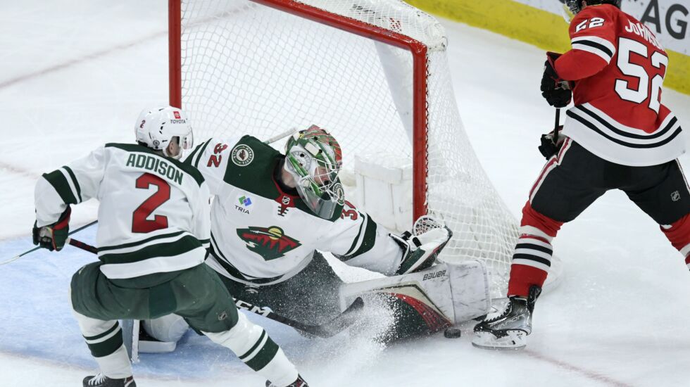 Minnesota forward Marcus Johansson scored both the game-tying and go-ahead goals within the final six minutes, helping the visitors overcome the Hawks’ massive 42-22 advantage in shots on goal.