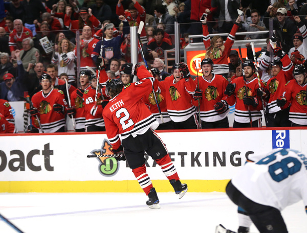 "Obviously it was a while, so it was nice to finally get one and contribute to a big win against a good team," Keith said. "When (Panarin) put it right there in my wheelhouse, I was just trying to get it on net as hard as I could."