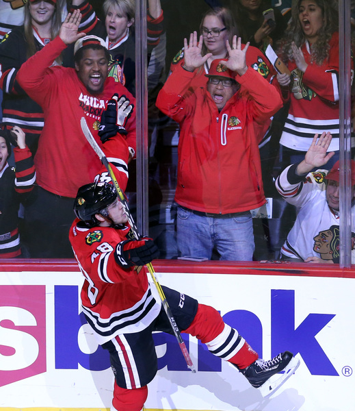 Ryan Hartman, who lived in West Dundee, Ill., and Palatine, Ill., scored the winning goal in the third period. Bartlett, Ill., native Vincent Hinostroza assisted on Hartman's goal and scored an important insurance goal with 2 minutes, 20 seconds remaining.