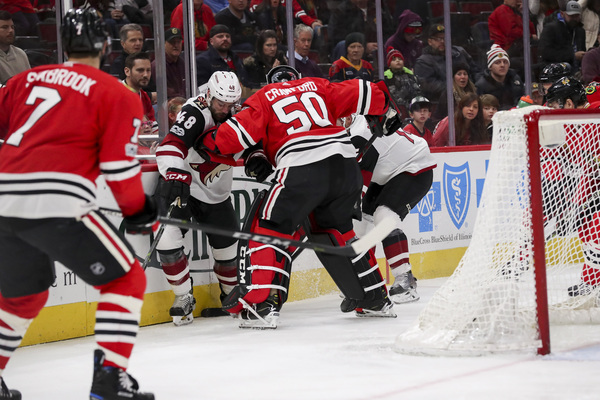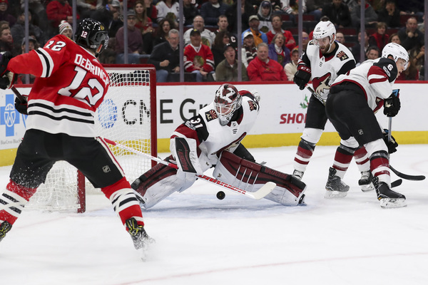 Former Blackhawks goalie Antti Raanta made 33 saves during the Coyotes' 1-0 loss to the Blue Jackets on Saturday did not play. And former Blackhawks defenseman Niklas Hjalmarsson is out with an upper-body injury. He hasn't played since Nov. 28.