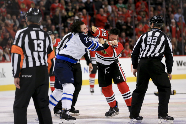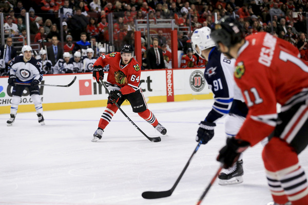 The Jets and Hawks were scoreless for most of the first two periods until the Jets got their first power play of the night following a hooking penalty on Patrick Kane.