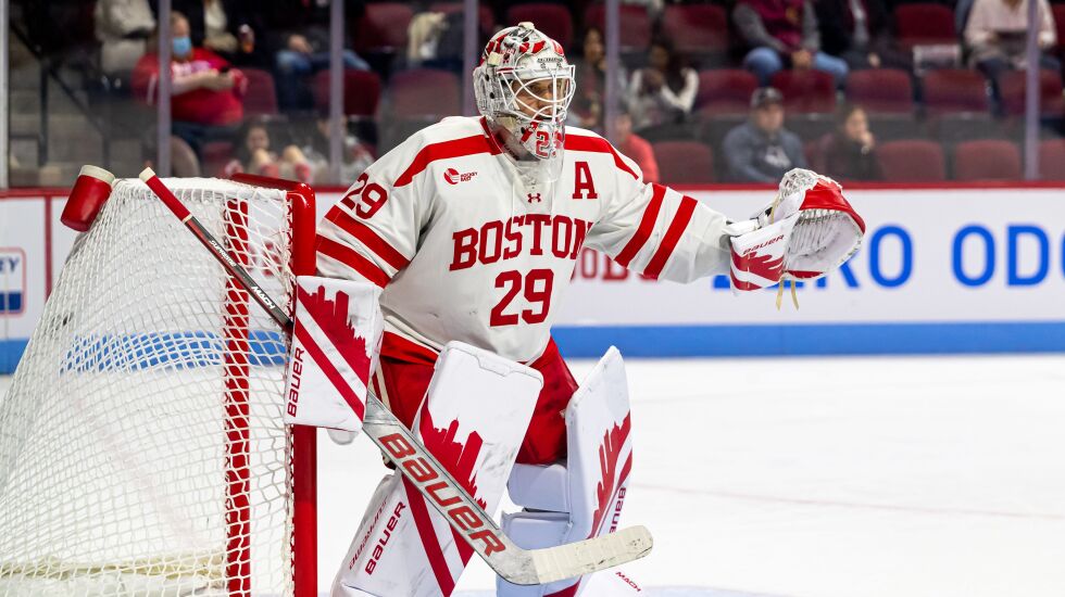 At Boston University, Commesso’s results were remarkably steady — he finished with .915, .914 and .913 save percentages his three seasons there — but didn’t really improve. He did deal with a bout of mononucleosis last winter that cost him weight and energy.