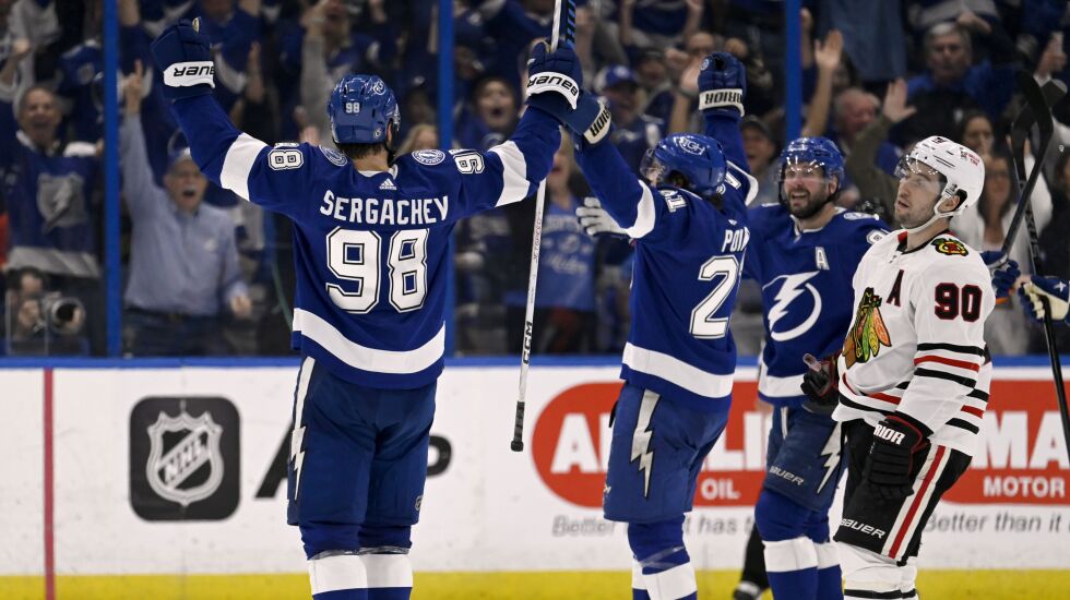 Taylor Raddysh, Cole Guttman and Tyler Johnson — three Hawks forwards with previous Lightning connections — teamed up for the equalizing goal with 14:37 left, and the Hawks controlled momentum for much of the final period.