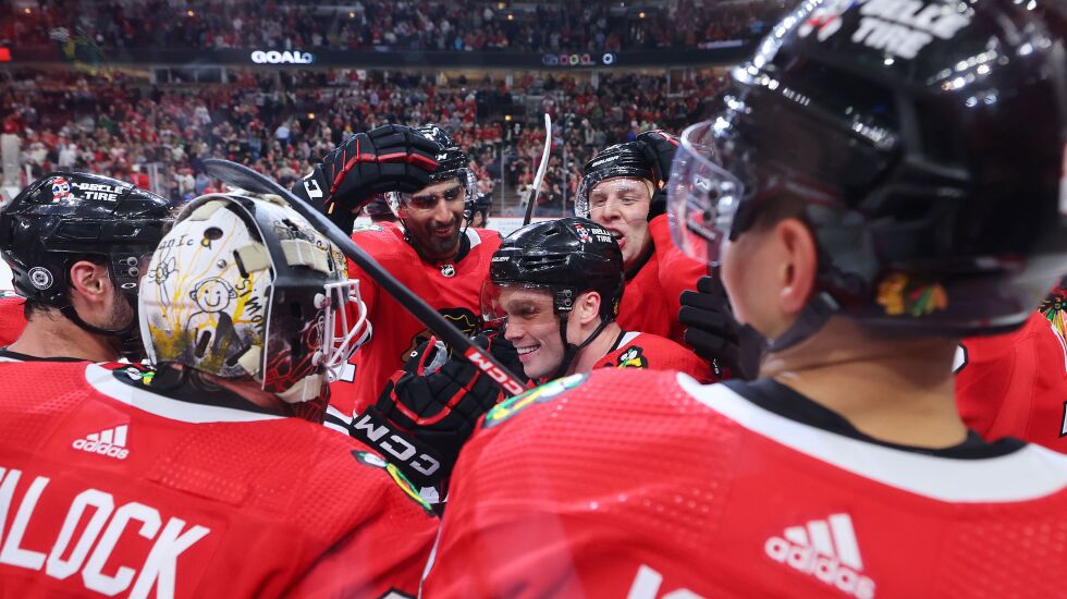They have exceeded expectations so far. Coach Luke Richardson’s systems have the Hawks outperforming their talent level, and some of general manager Kyle Davidson’s low-key, low-risk pickups in the last year — such as Sam Lafferty, Jason Dickinson and goalie Alex Stalock — are off to hot starts.