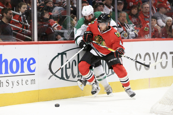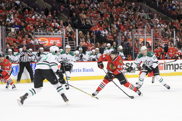 The Hawks got their second goal of the night later in the period. After a penalty ended on Ryan Hartman, Hartman emerged from the penalty box and won a puck battle with Stars defenseman Stephen Johns. Hartman put the puck on Lehtonen but Lehtonen came up with the save.