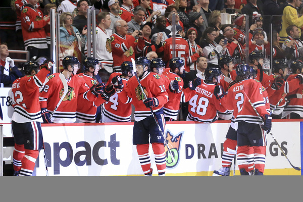 The Hawks played without Jonathan Toews (back), goaltender Corey Crawford (appendectomy) and Brent Seabrook (apparent head injury).