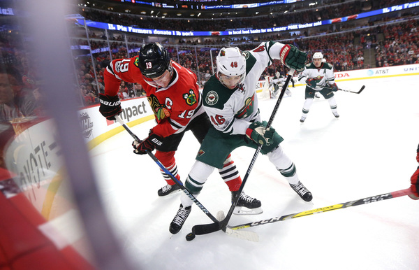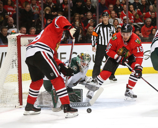 The Wild had moment in the first period when they got pressure on Hawks goaltender Corey Crawford, especially in the opening minutes, but Crawford didn't bend in the crease as he made 13 saves.