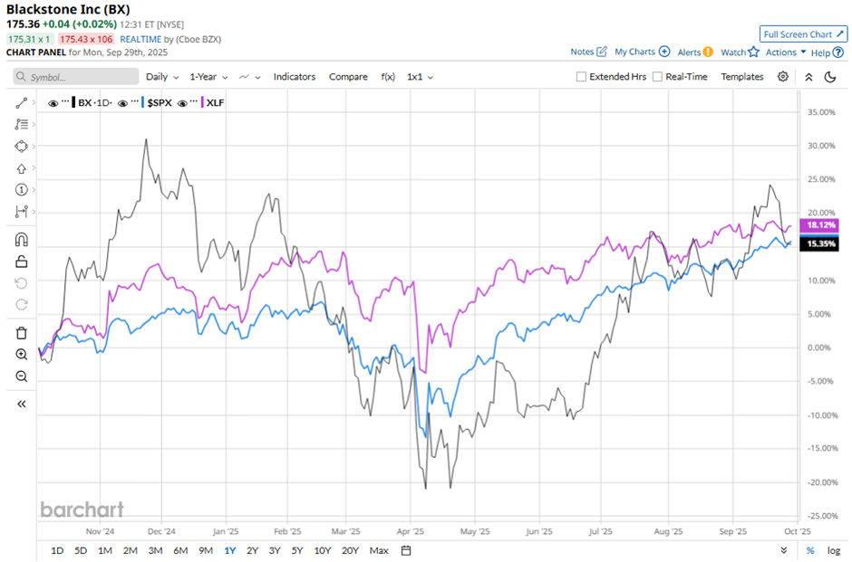 Shares of Blackstone have soared 13.3% over the past 52 weeks, underperforming both the S&P 500 Index's ($SPX) over 16% gain and the Financial Select Sector SPDR Fund's (XLF) 19.4% return over the period.