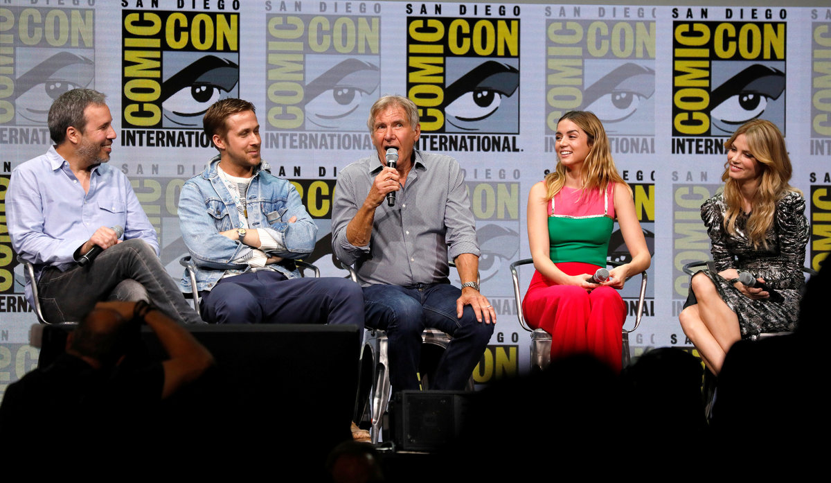 Villeneuve, Ford and Gosling were joined by other cast members on Saturday at San Diego's annual Comic-Con as they discussed the sequel and debuted new footage that showed a world where Replicants and humans live alongside each other, but not in harmony.
