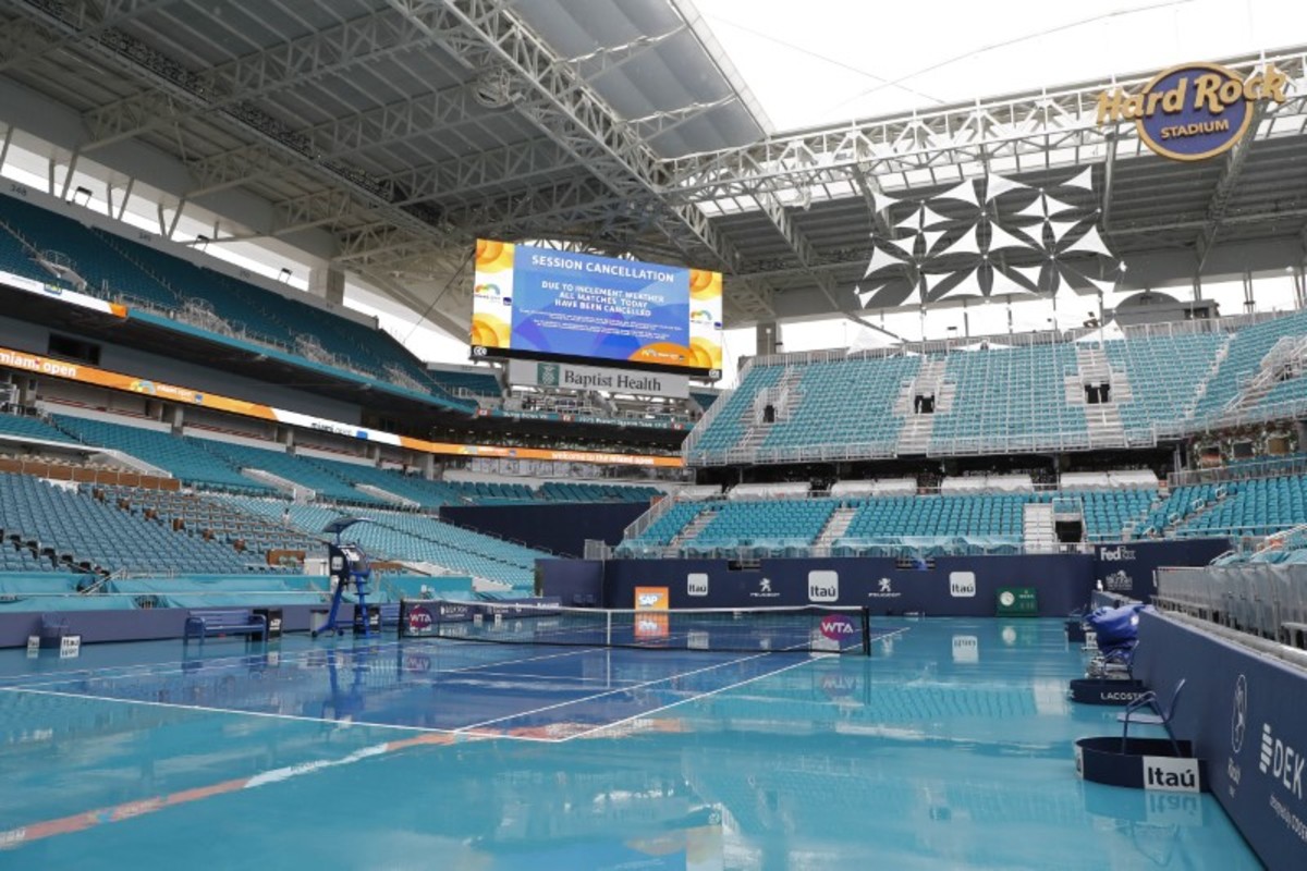 MIAMI (Reuters) - As a player James Blake endured many a rain delay but on Tuesday the Miami Open tournament director was forced to sit through a painful day-long drizzle, delaying what was expected to be a record-smashing move from Crandon Park to Hard Rock Stadium.