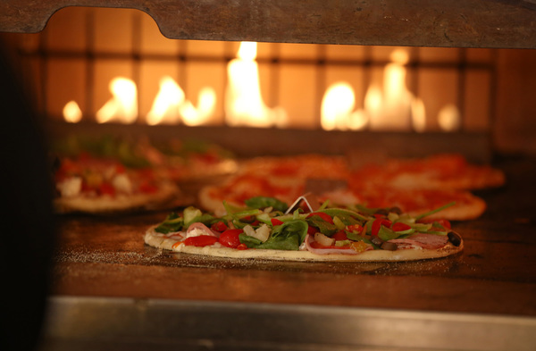 The concept is simple: Diners either pick one of Blaze's signature pizzas (with the option to customize anything on it) or build one themselves. Workers spread sauce and sprinkle toppings on pre-made and rolled dough, then pop it into a $33,000 oven with three-sided flames that can get temperatures up past 900 degrees. Three minutes later, it's done.
