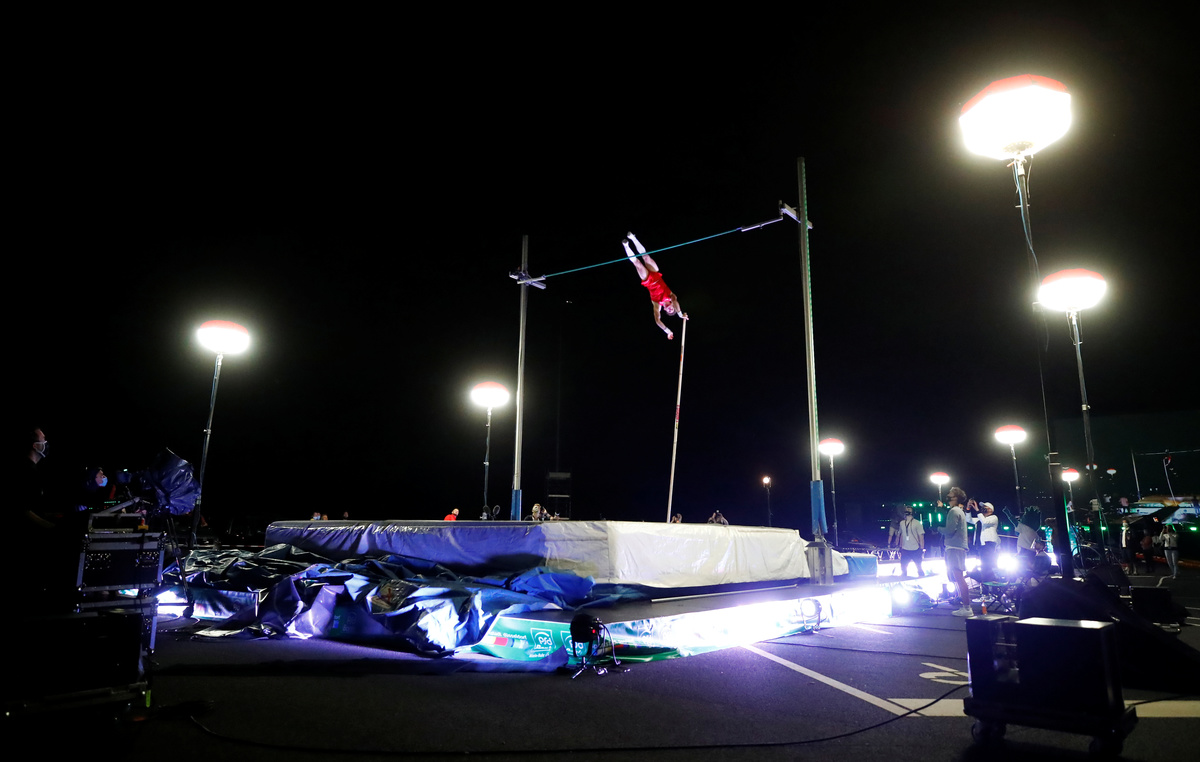 Fans deprived of live athletics action were treated to a mini pole vaulting competition on Friday as German Torben Blech won the Flight Night event at a drive-in cinema in Duesseldorf, Germany.