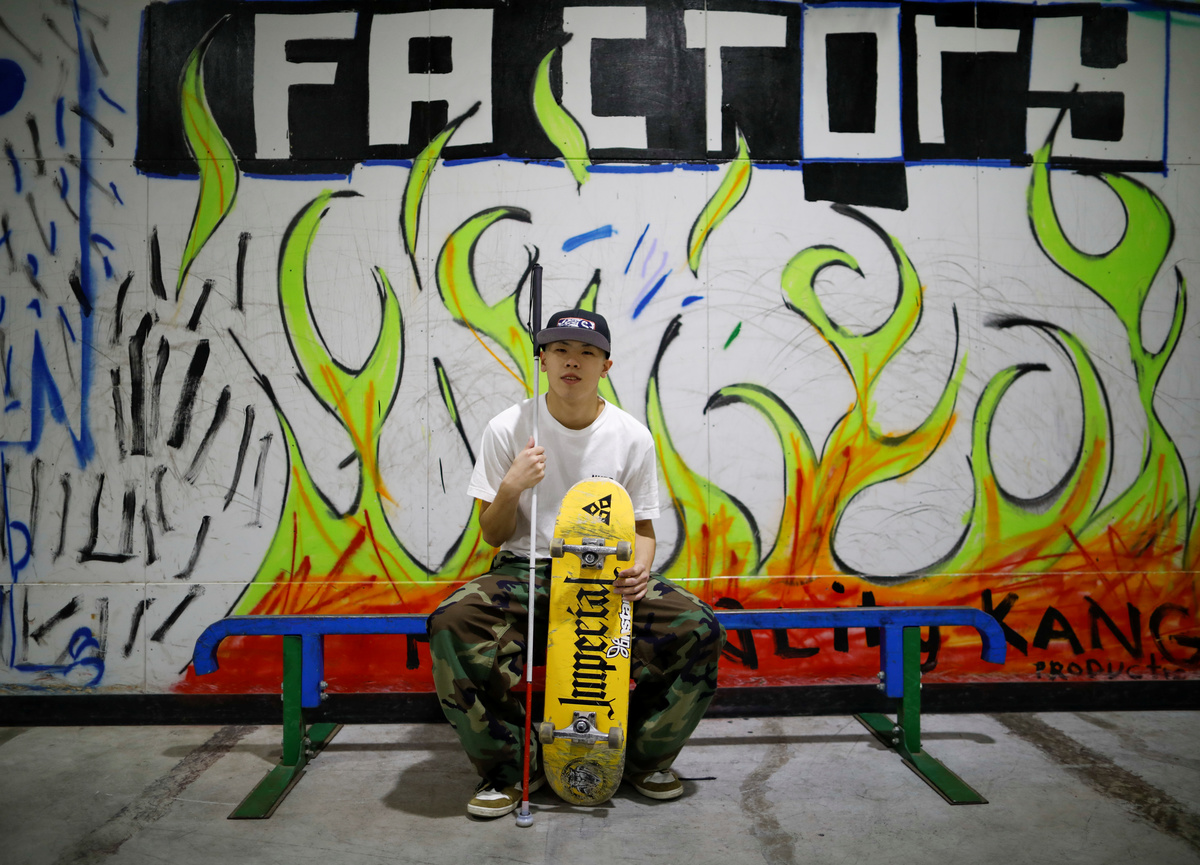 Ouchi started skateboarding at 15 when his eyesight began to degenerate faster. He realised he wanted to learn before it was too late.