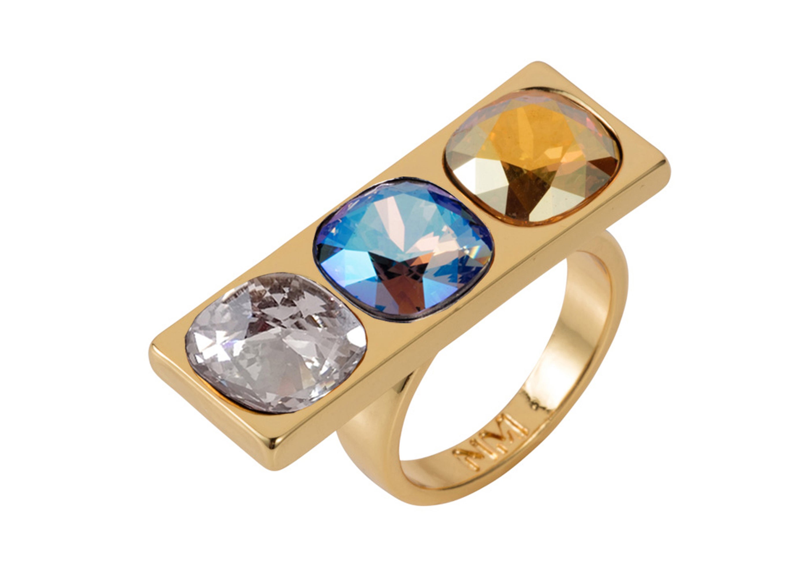 1. Nadia Minkoff Nova Crystal Ring in Gold With Blue Shimmer, £32, Wolf & Badger