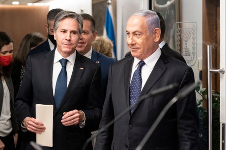 The US secretary of state, who met Israeli prime minister Benjamin Netanyahu on the first leg of his tour in Jerusalem, said the ceasefire in the latest conflict between Israel and Hamas needs to be used to address “the grave humanitarian situation in Gaza and starting to rebuild”.