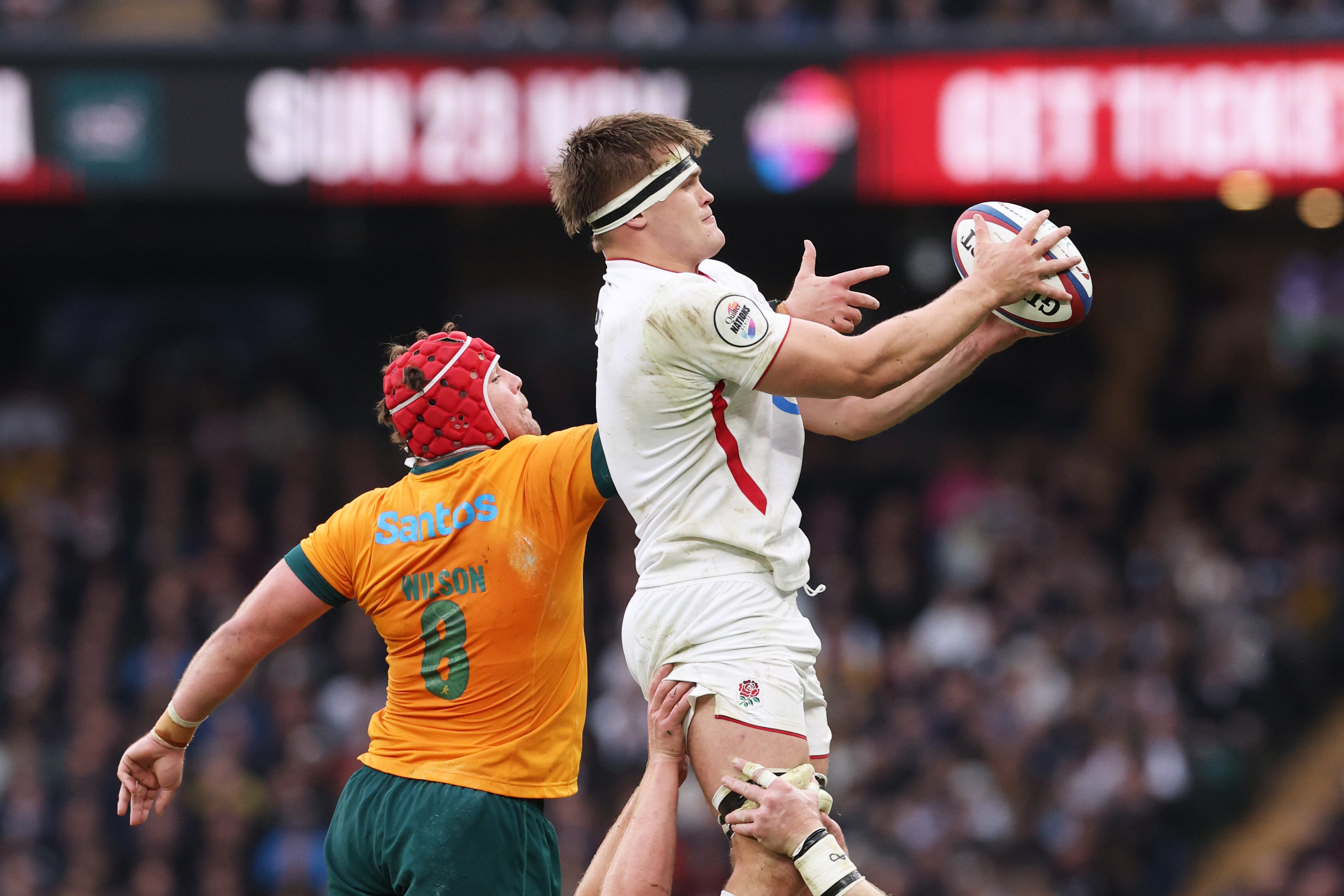 For perhaps a more pertinent example of the profile that Pollock already commands, one only has to look at his introduction into the contest. With the game in the balance at 10-7, Australia having stuck in it and grown with confidence, Steve Borthwick turned to his bench trump card. At 51 minutes, five of his six British and Irish Lions were sent on together. It was a group that included a 50th capper in Luke Cowan-Dickie, the ever-popular Ellis Genge and Tom Curry, playing his first minutes of the season. And yet, as the stadium announcer dutifully worked through the list of replacements, it was Pollock who drew the greatest reaction.