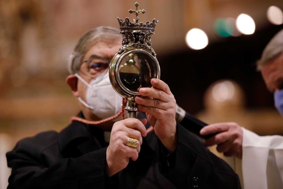 On Wednesday the city's cardinal, Crescenzio Sepe, told the faithful not to be overly dismayed. "If something needs to melt, it is the hearts of people," he said.