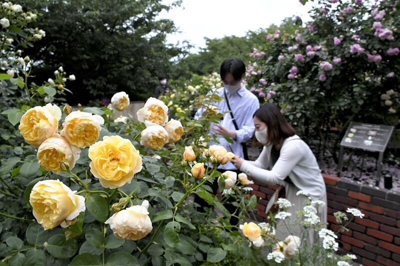 KOBE -- Roses of various colors are blooming at the Kobe Nunobiki Herb Gardens in Chuo Ward, Kobe, and will be at their peak through late this month.